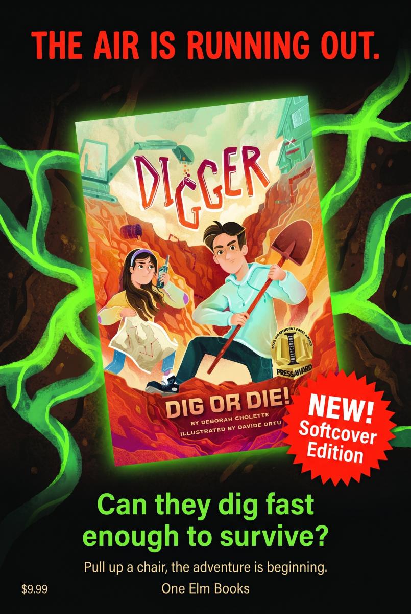 “As siblings Nick and Lily watch panic engulf their neighborhood, their talents—Nick digs tunnels; Lily is a champion organizer—take on new importance. The pace of the story never lets up as the two kids struggle to provide their neighbors with the basics that they have always taken for granted: food, shelter, and above all, air. Based on a scientific possibility, Digger: Dig or Die will have middle-grade readers on the edge of their seats from the first page to the last.”